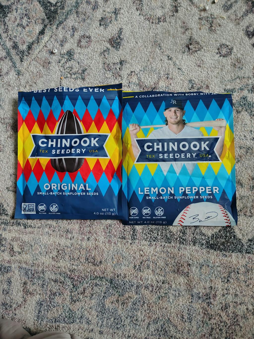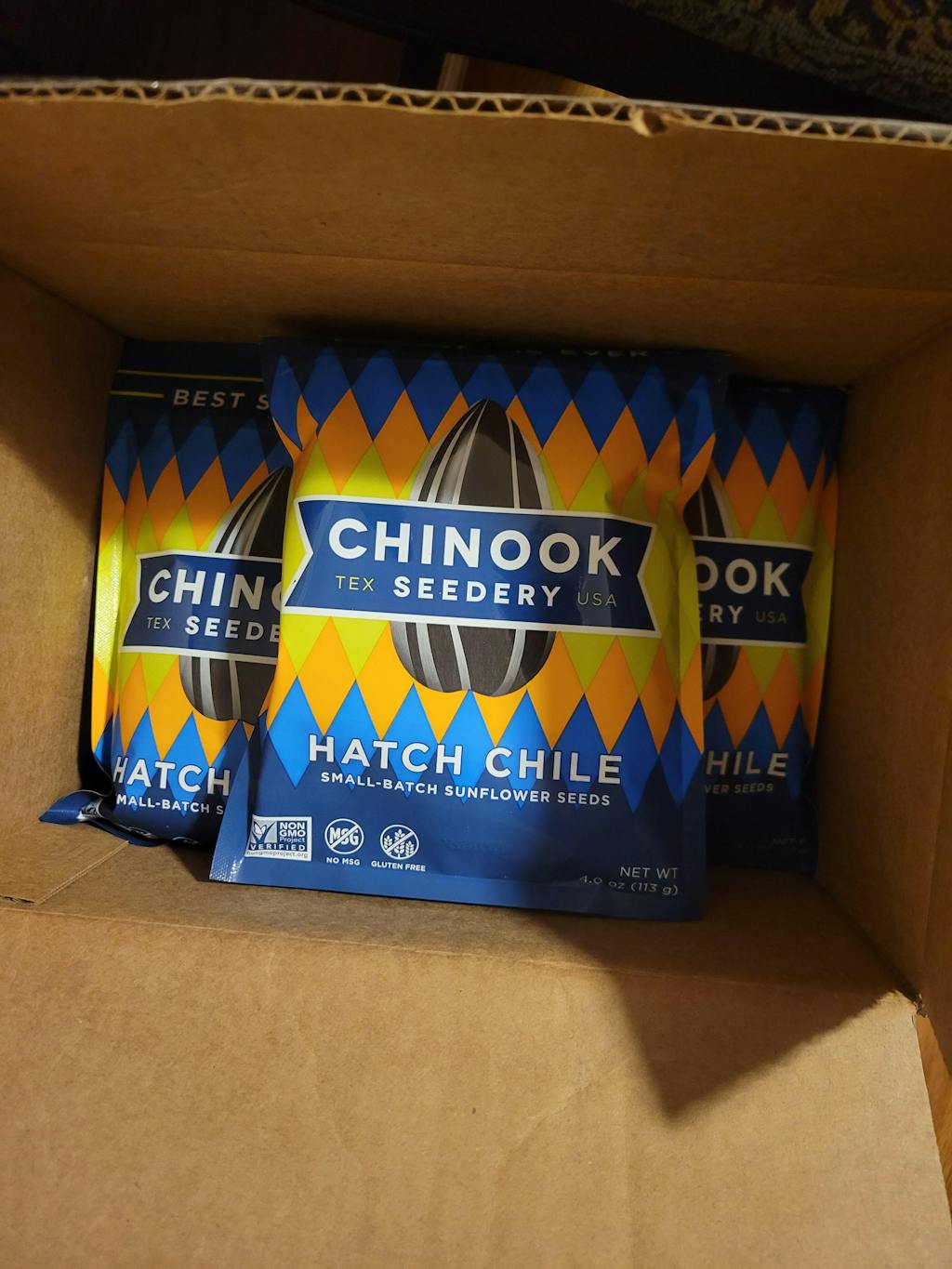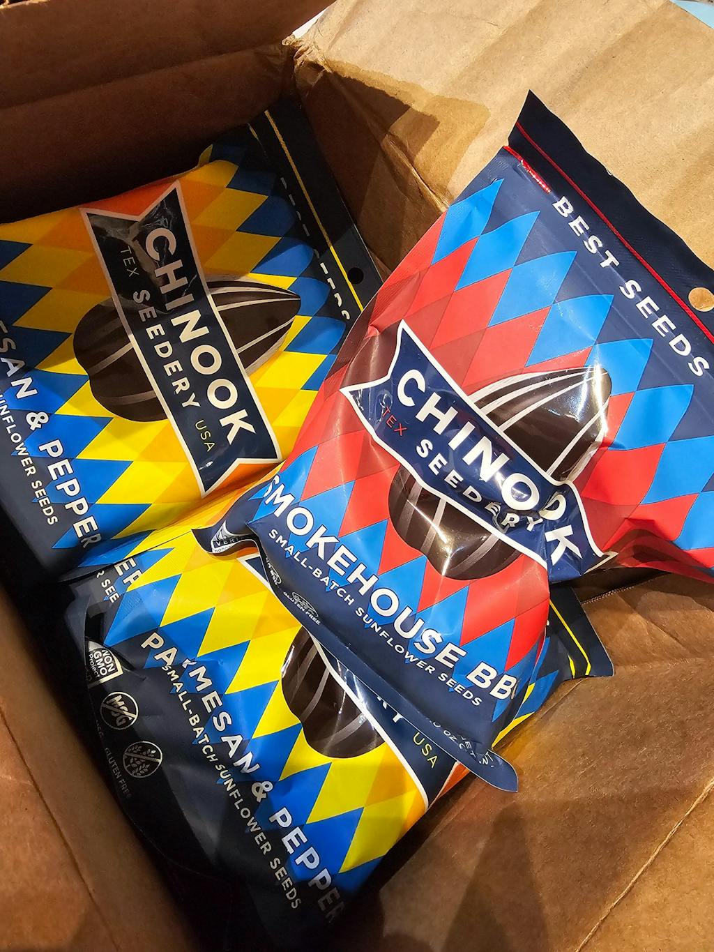 Found out about you in Omaha at the slumpbuster festival. Boy wanted rhe glove, BBQ edition, came with seeds, shirt, etc. I took the seeds and havent quit eating them since. When we got home I ordered two boxes. ADDICTED!!! Non GMO is what sold me. Good job Chinook!!!!